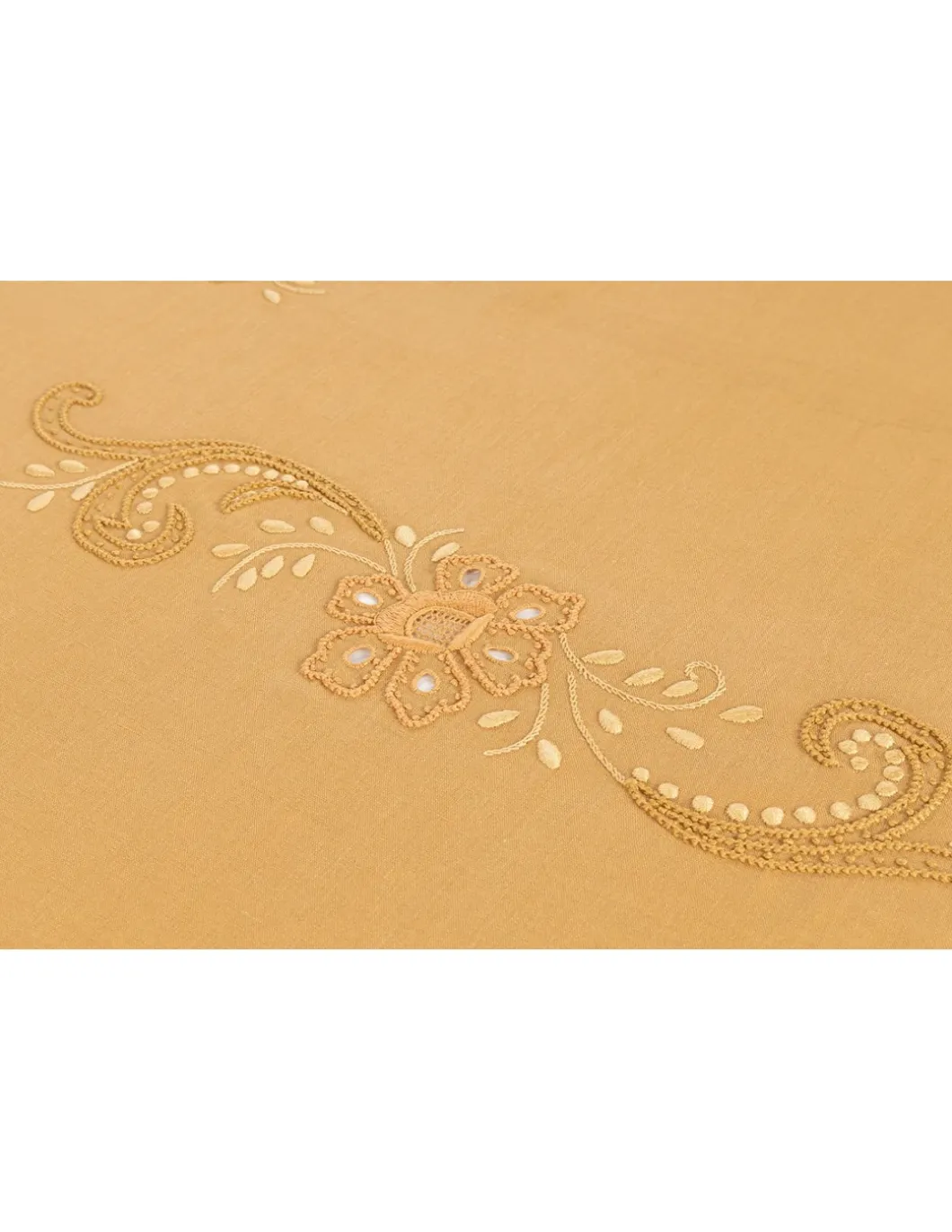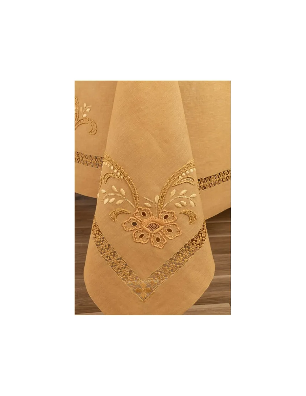 Toalha 100% linho, cor mostarda. Toalha toda bordada à mão no papelão, com fios de algodão.