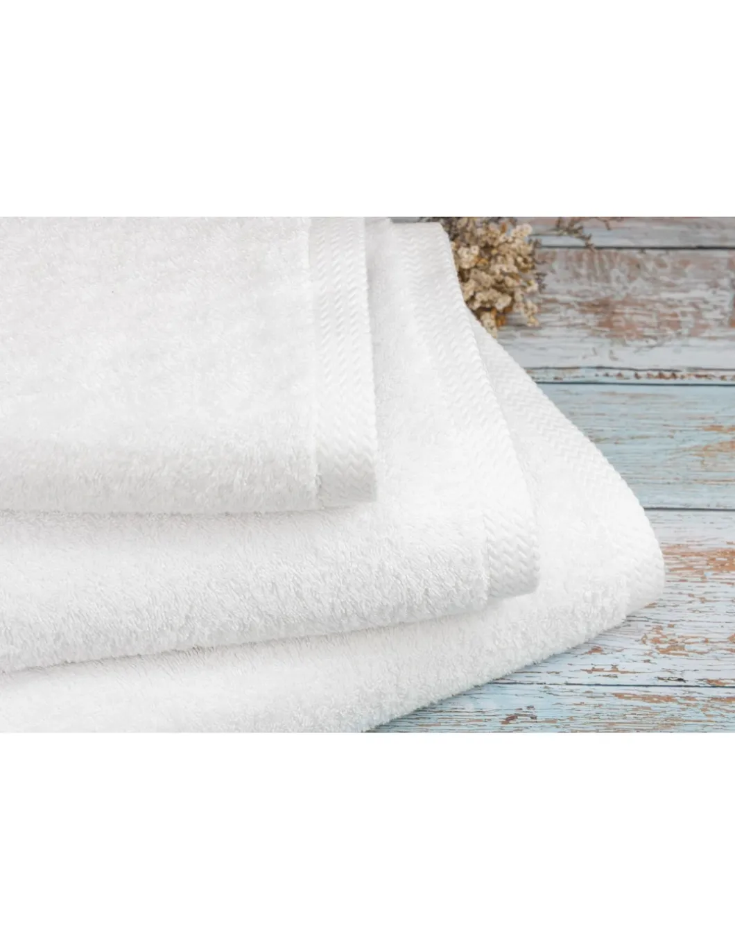 Toalha desenvolvida especificamente para hotéis, spas e centros de estética, com costuras laterais duplas, solidez à lavagem a 60°.