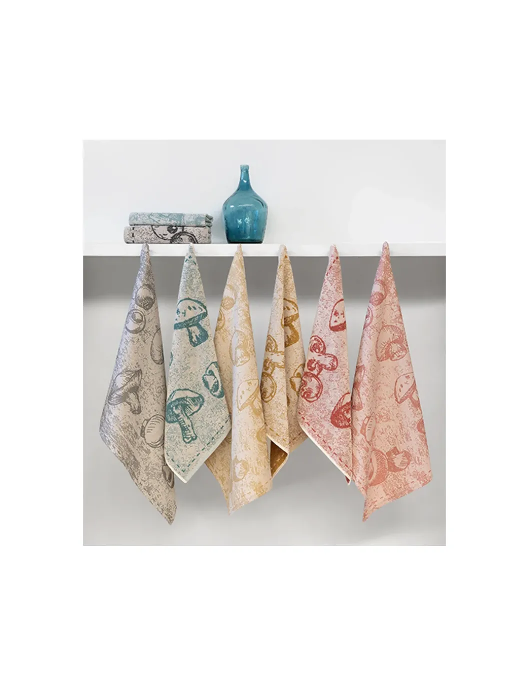 Linha Fungi com 4 cores a escolha, pack de 4 panos de cozinha 100% algodão felpo.
