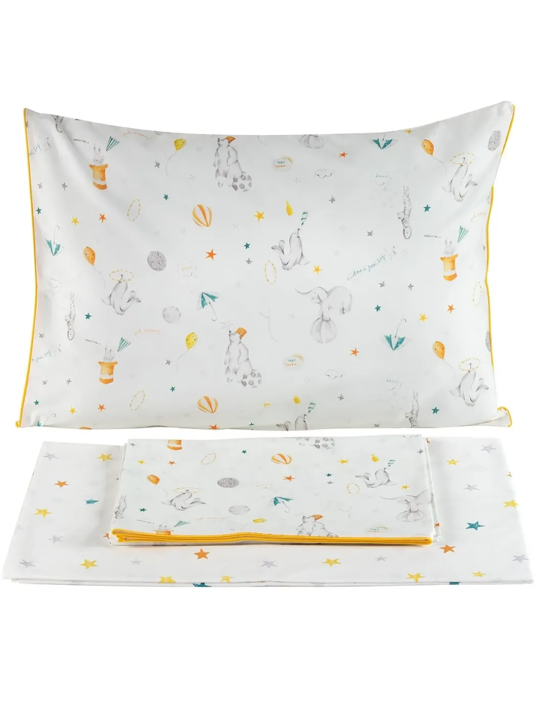 1 lençol superior 180×280 cm + 1 lençol capa ajustável 100×200 cm + (1) fronha 50×70 cm