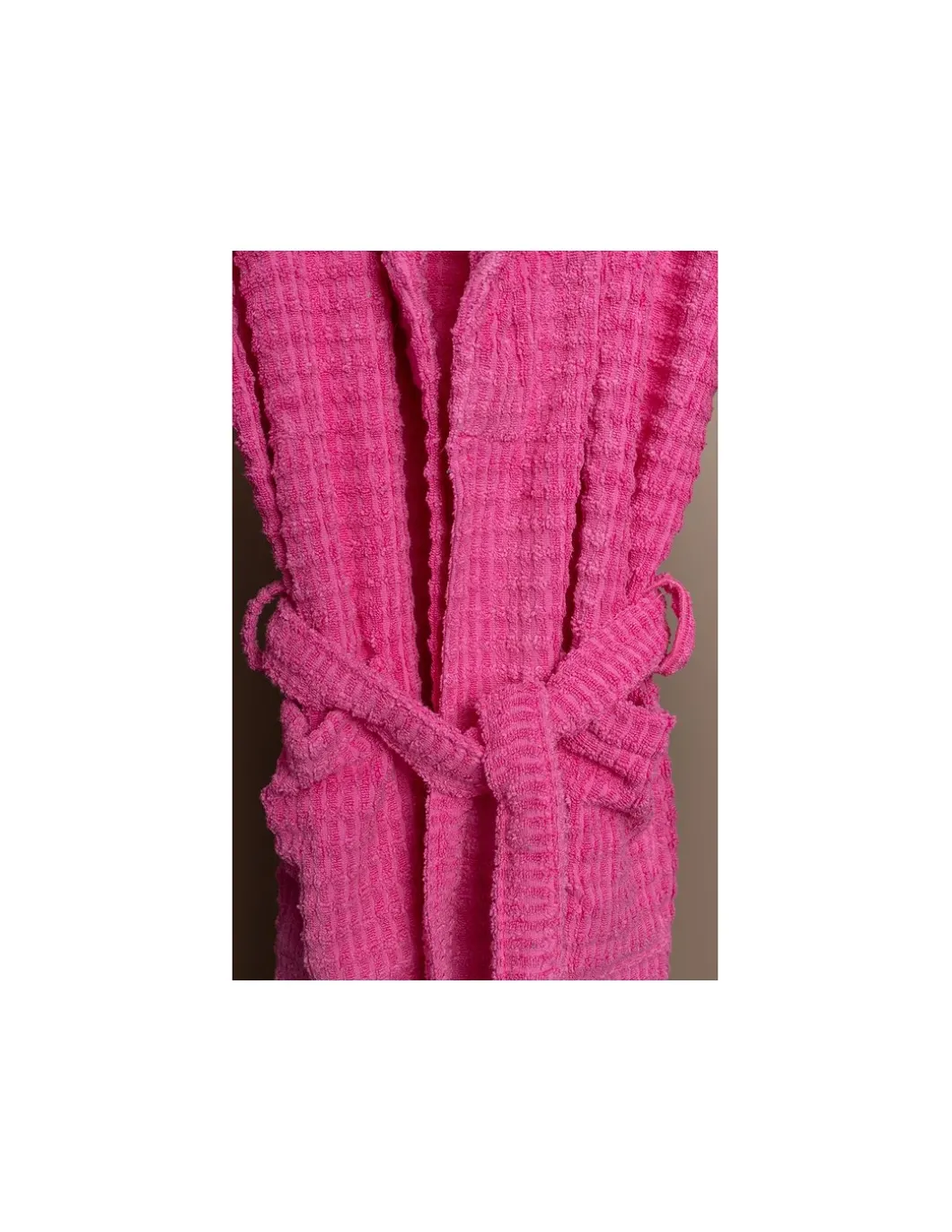 Roupão C/ gola, cinto, bolsos e presilha para pendurar.