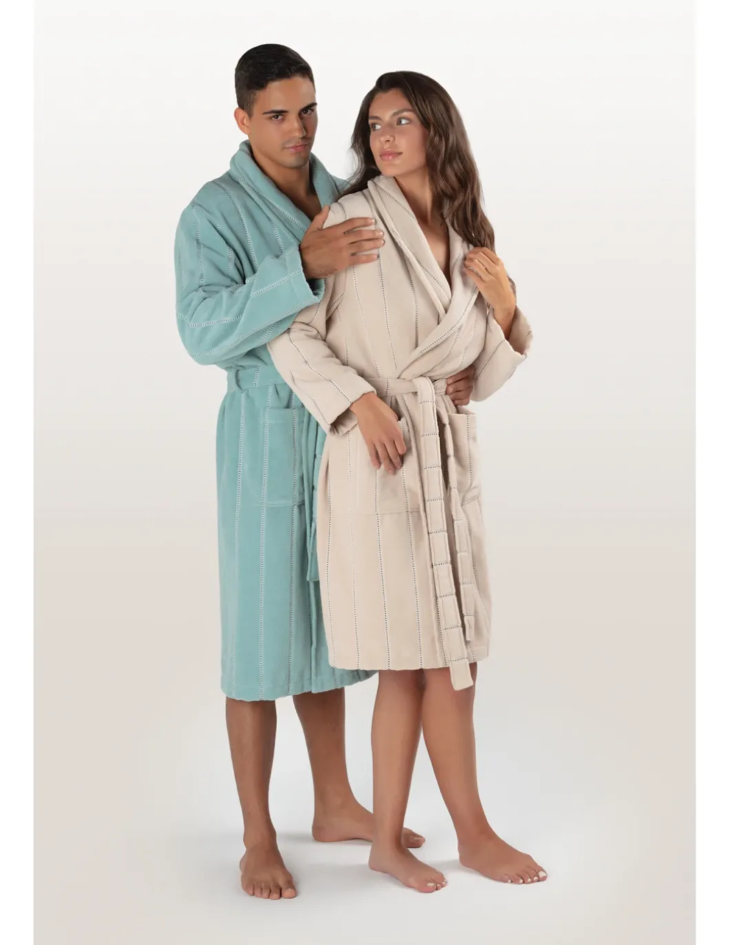 Roupão de banho Lasa – Home, cinto, bolsos e presilha para pendurar. Roupão 100% algodão com 360 gr./m2 fio torcido cara interna e cara externa laminada.