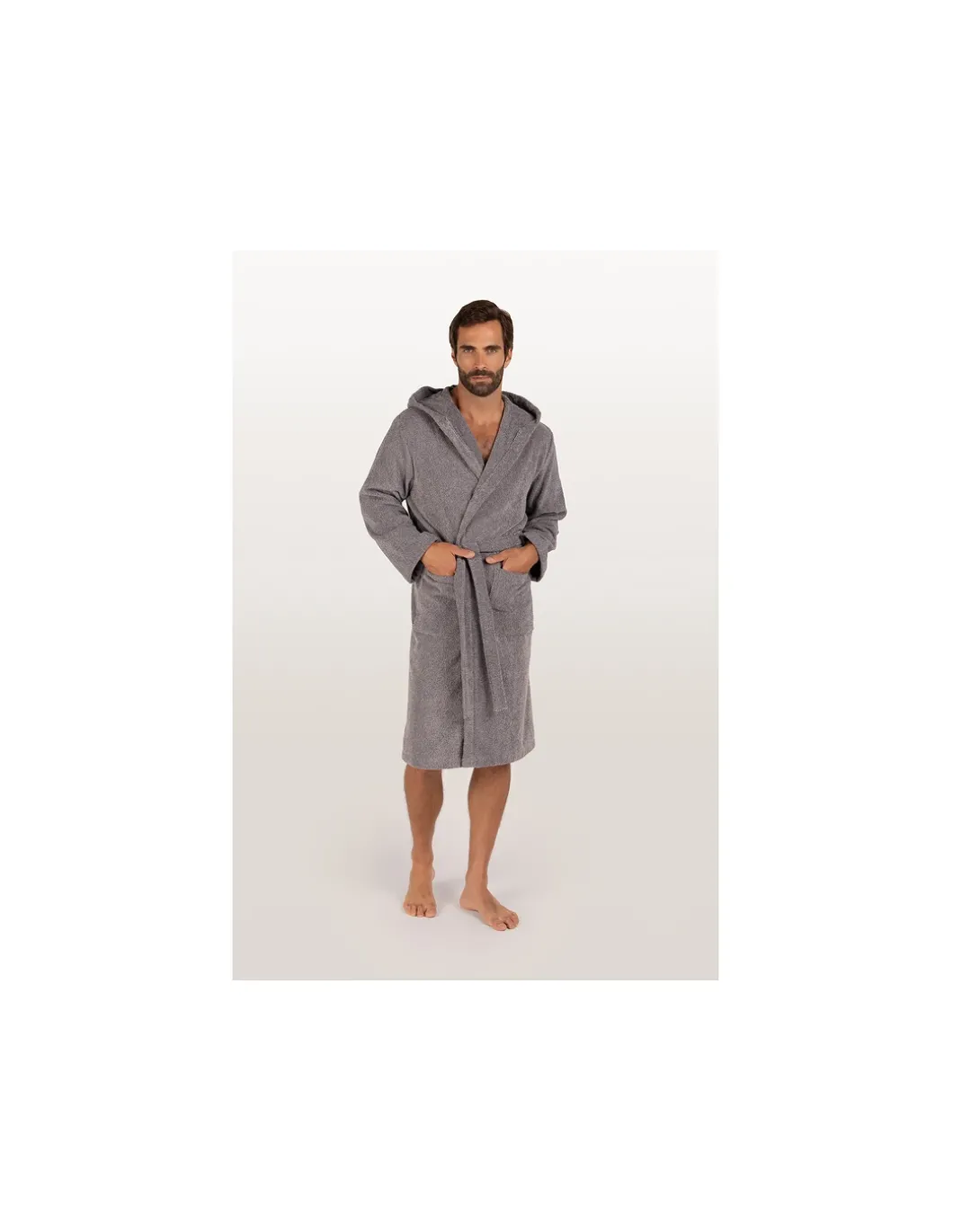 Roupão de banho Lasa – Home, com gola, cinto, bolsos e presilha para pendurar. Roupão 100% algodão com 380 gr./m2
