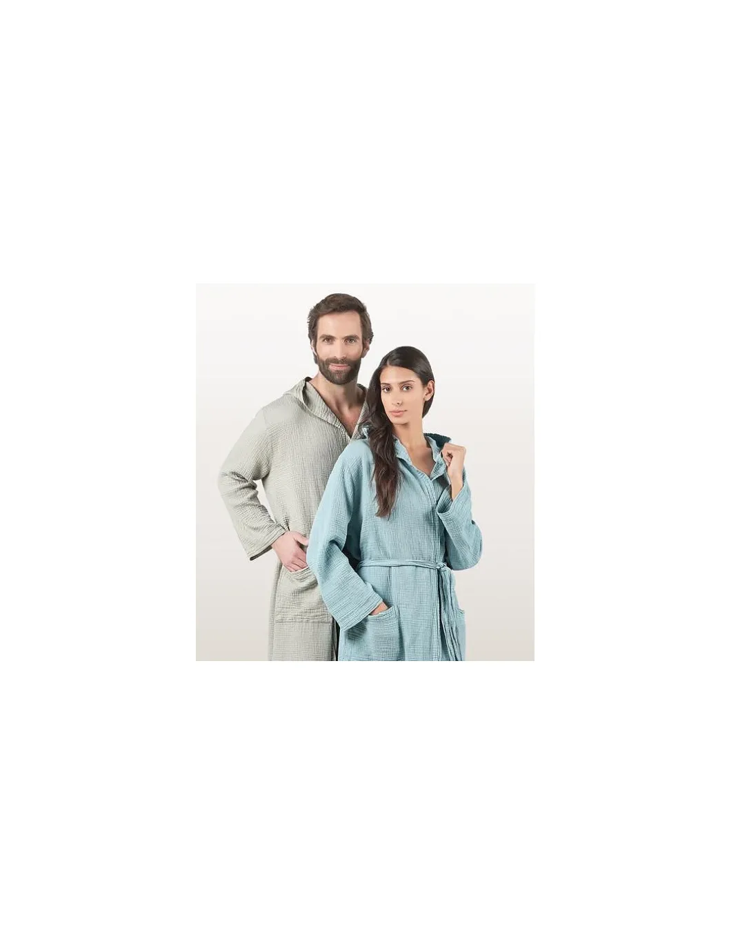 Roupão Lasa – Home, com capuz, cinto, bolsos e presilha para pendurar.