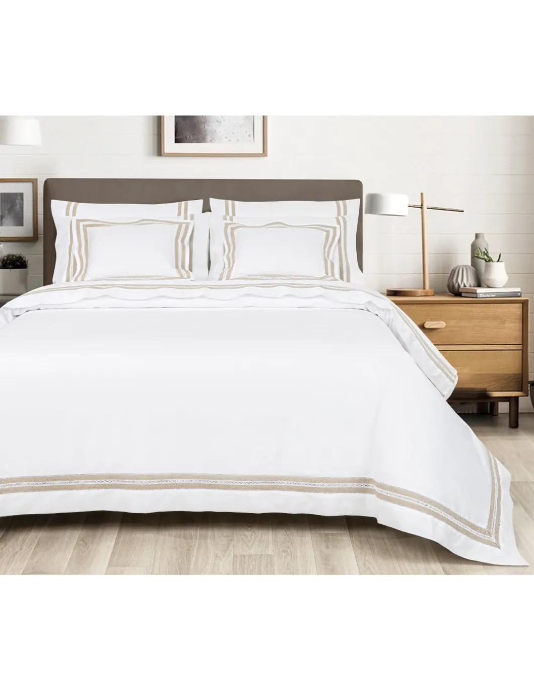 Renda aplicada no saco para edredão e fronhas.