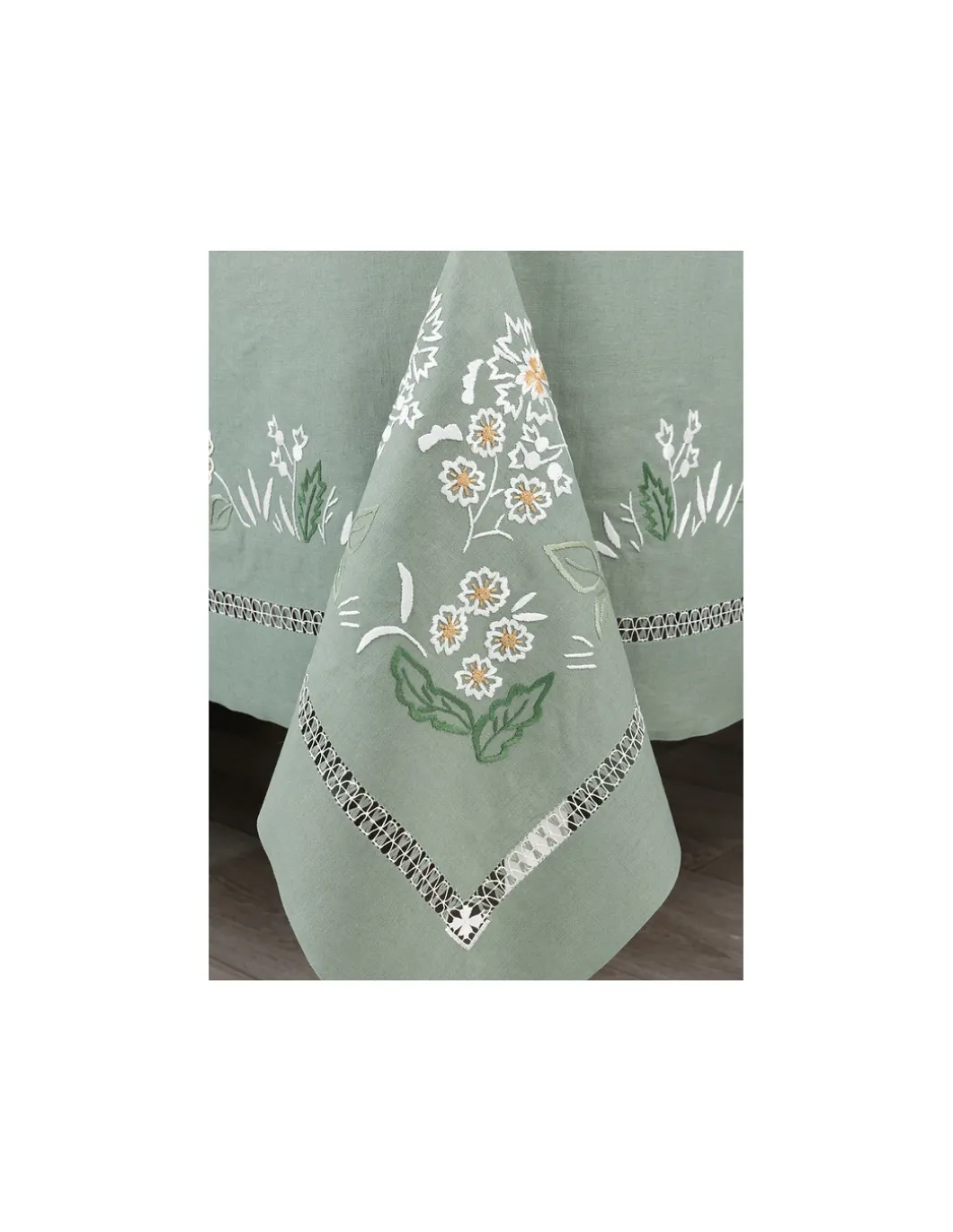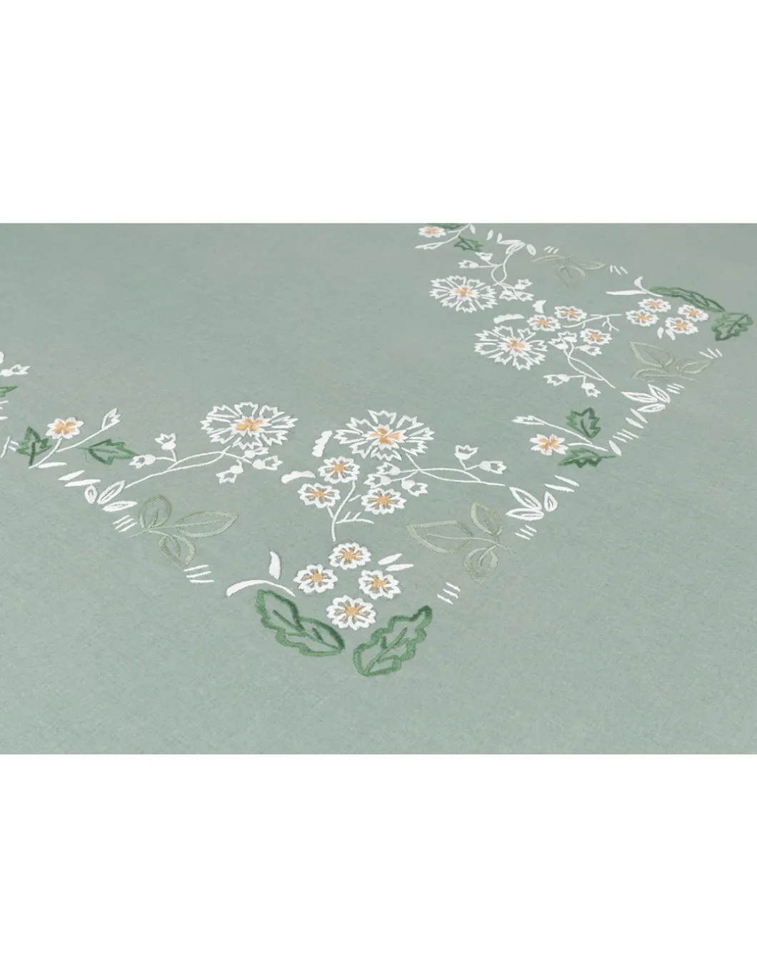 Toalha com bordado / desenho fechado a toda a volta e centro da mesa.