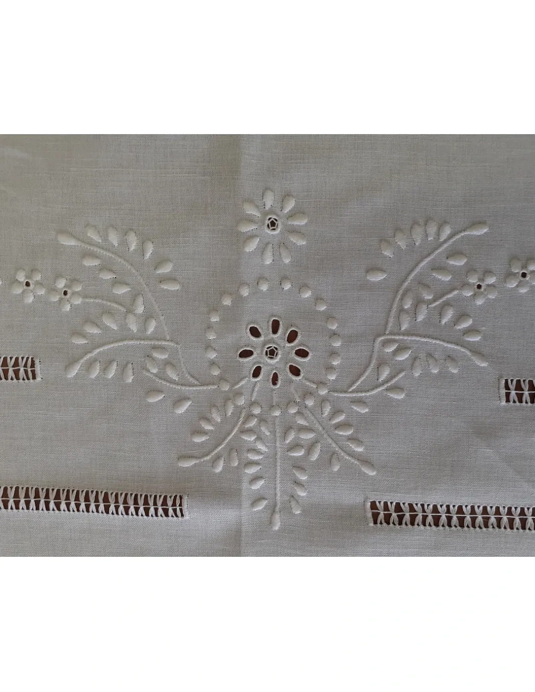 Bordados regionais do Minho, bordados da lixa aplicados em esta toalha de folha de videira.