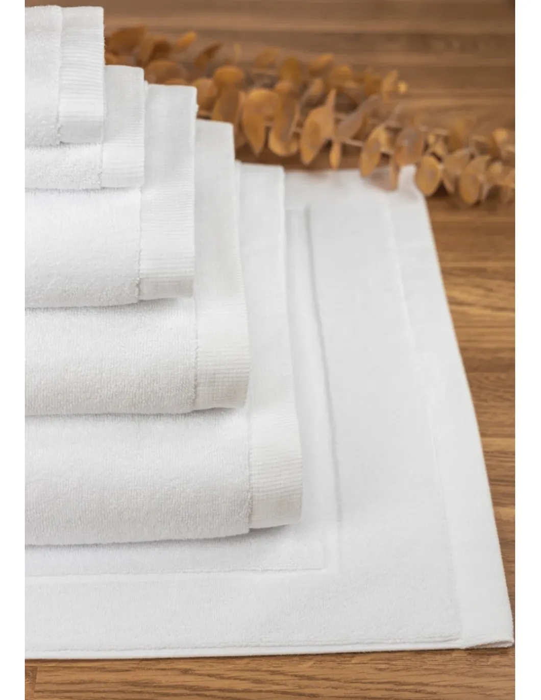 Toalha desenvolvida especificamente para hotéis, spas e centros de estética, com costuras laterais duplas, solidez à lavagem a 60°.