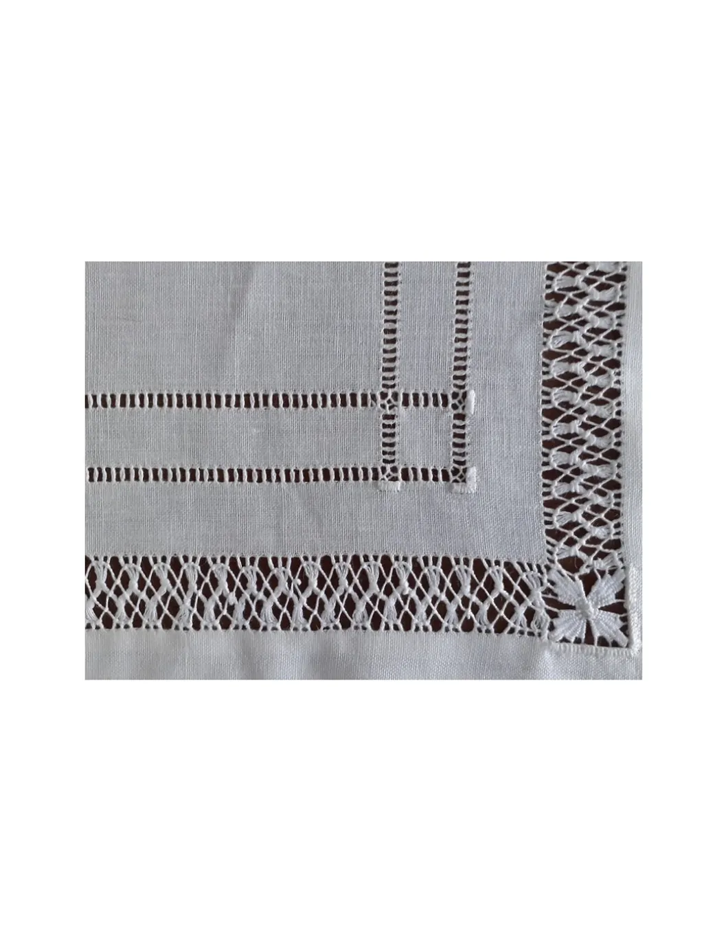 Bainha de 3 linhas completa a toda a volta e ponto ajour no centro.