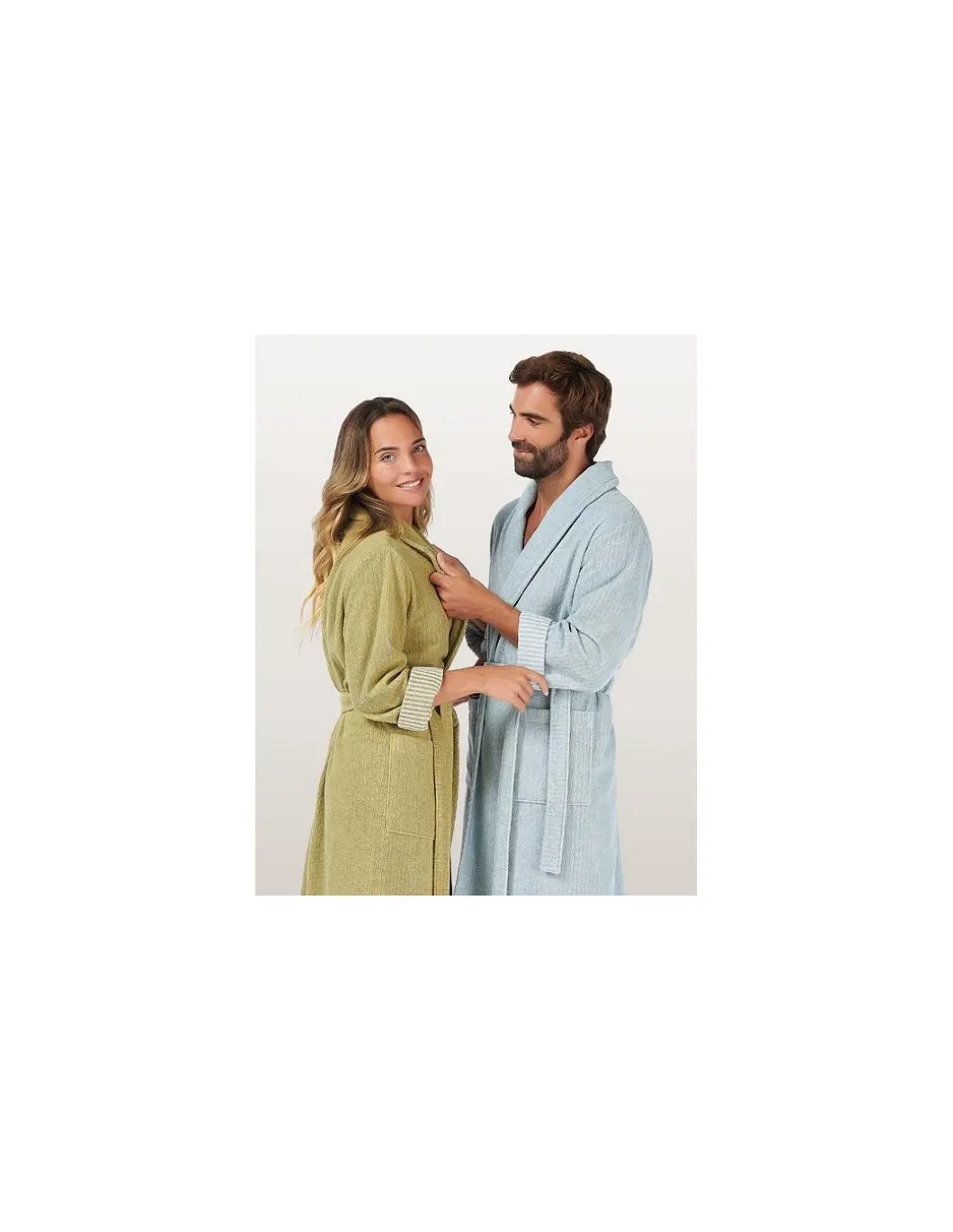 Roupão de banho Lasa – Home, com gola, cinto, bolsos e presilha para pendurar. Roupão 100% algodão com 380 gr./m2 fio torcido cara interna e cara externa laminada.